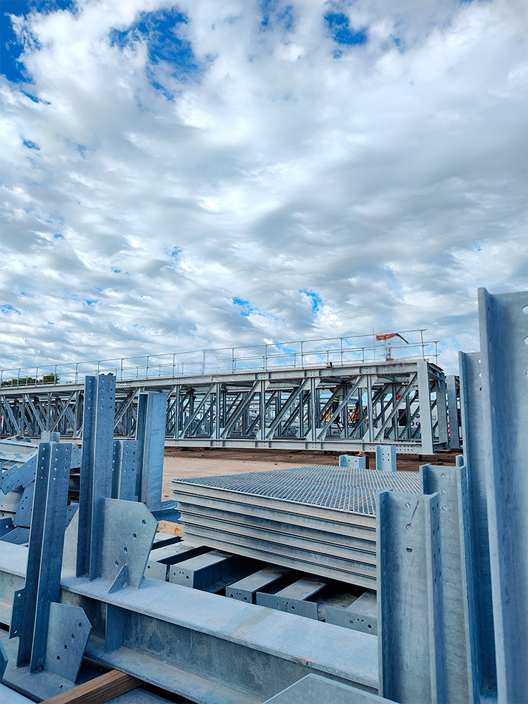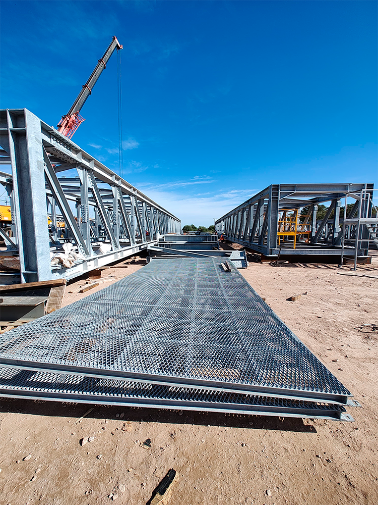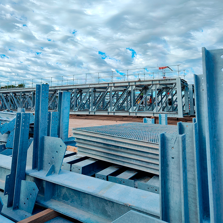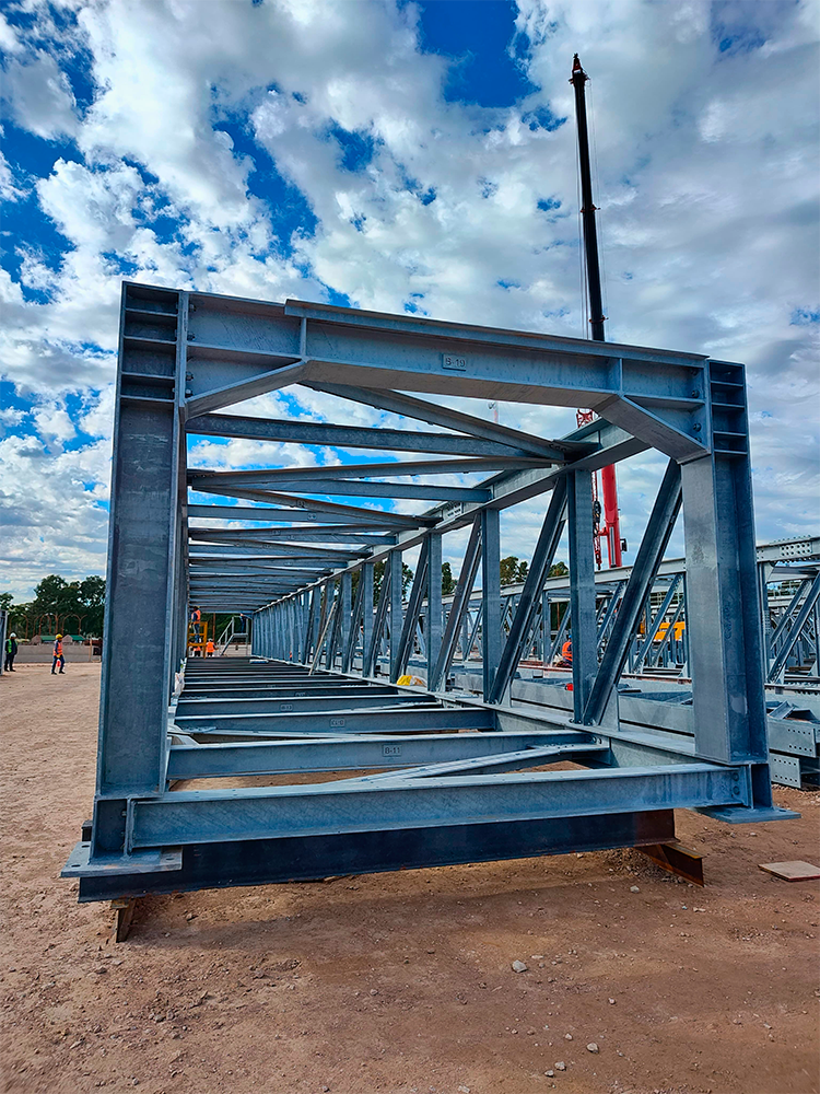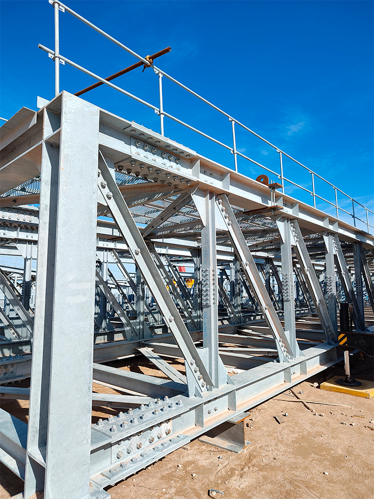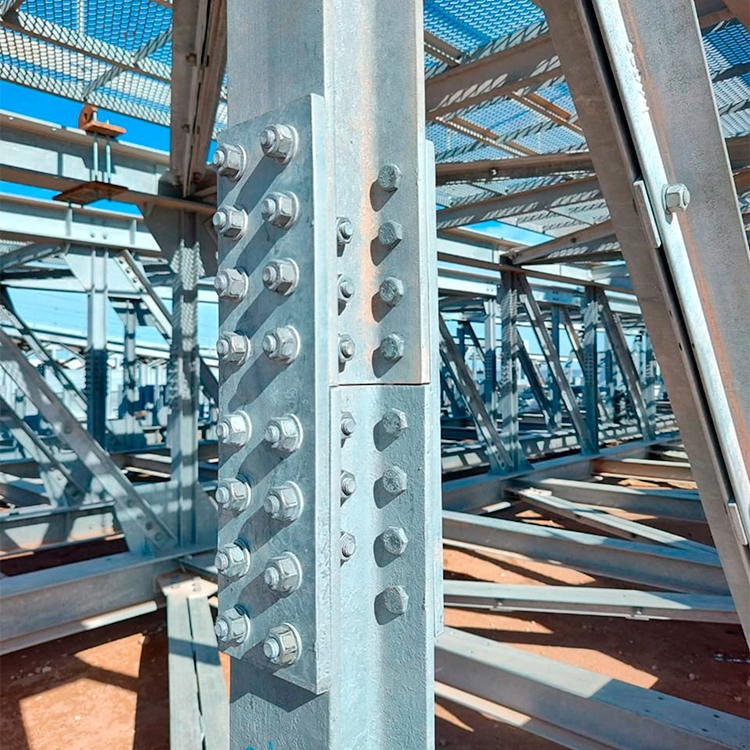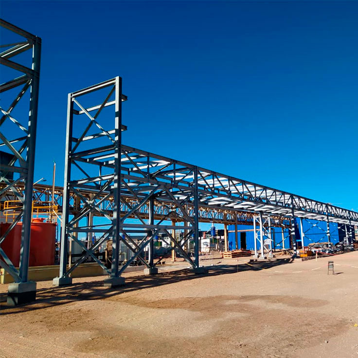 Estructura reticulada “Pipe rack". Esta estructura no solo garantiza la seguridad y eficiencia en las operaciones mineras, sino que también resalta el compromiso con estándares ambientales y de sostenibilidad. Un ejemplo destacado de cómo la galvanización protege y prolonga la vida útil de las estructuras en entornos industriales exigentes.