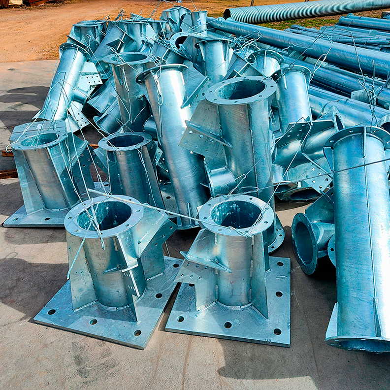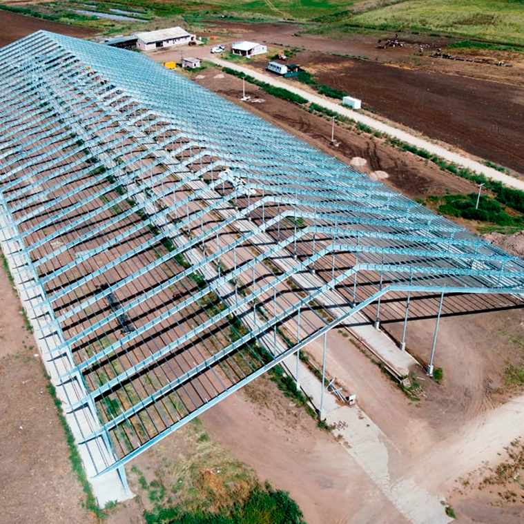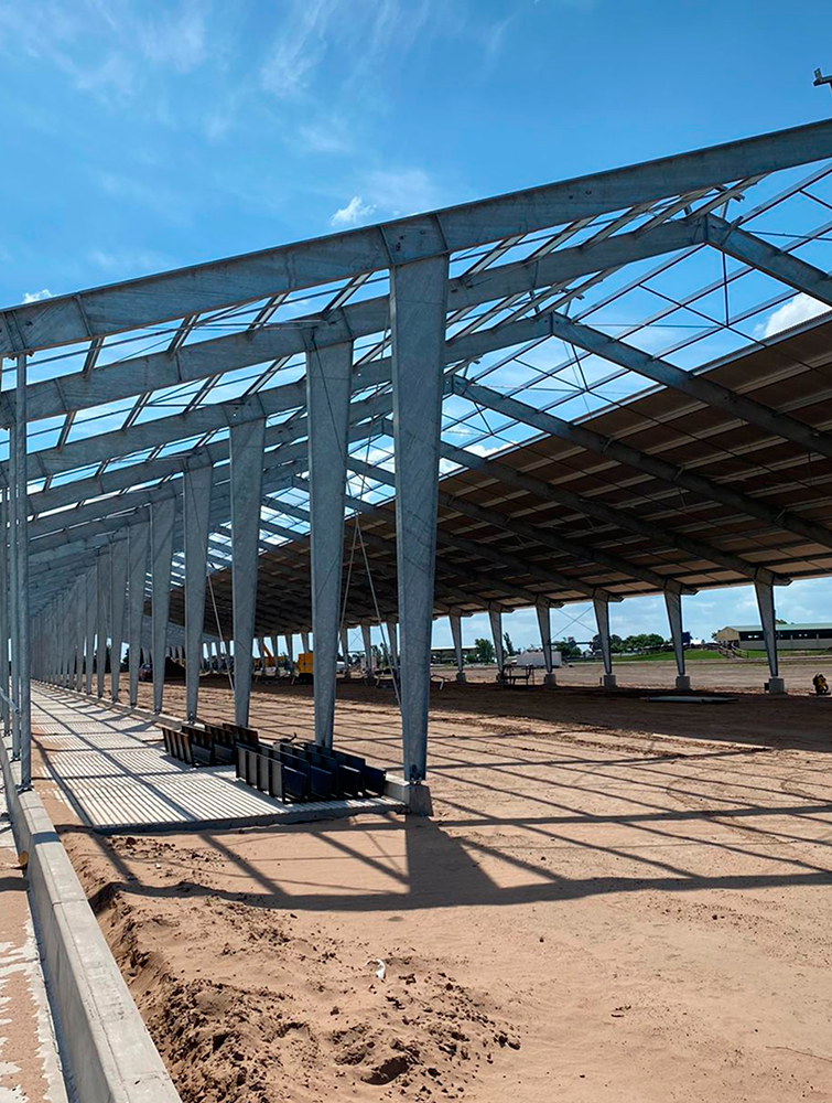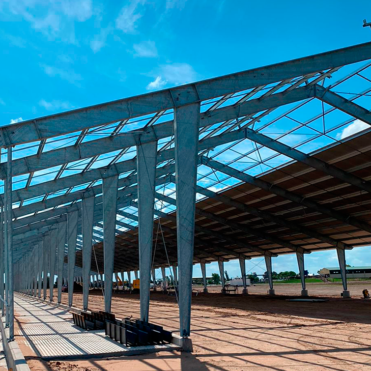 Las estructuras Galvanizadas forman parte del tambo, donde garantizan la integridad estructural y la durabilidad de las estructuras en un entorno de categorización industrial C4/C5, donde el excremento y orín animal, son altamente corrosivos.