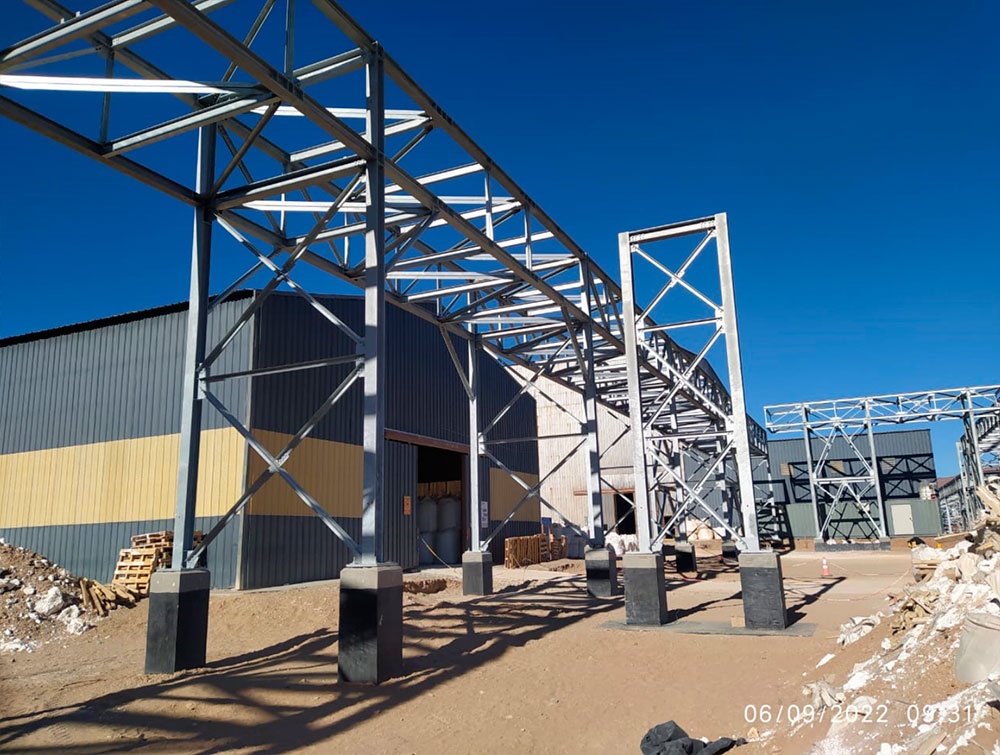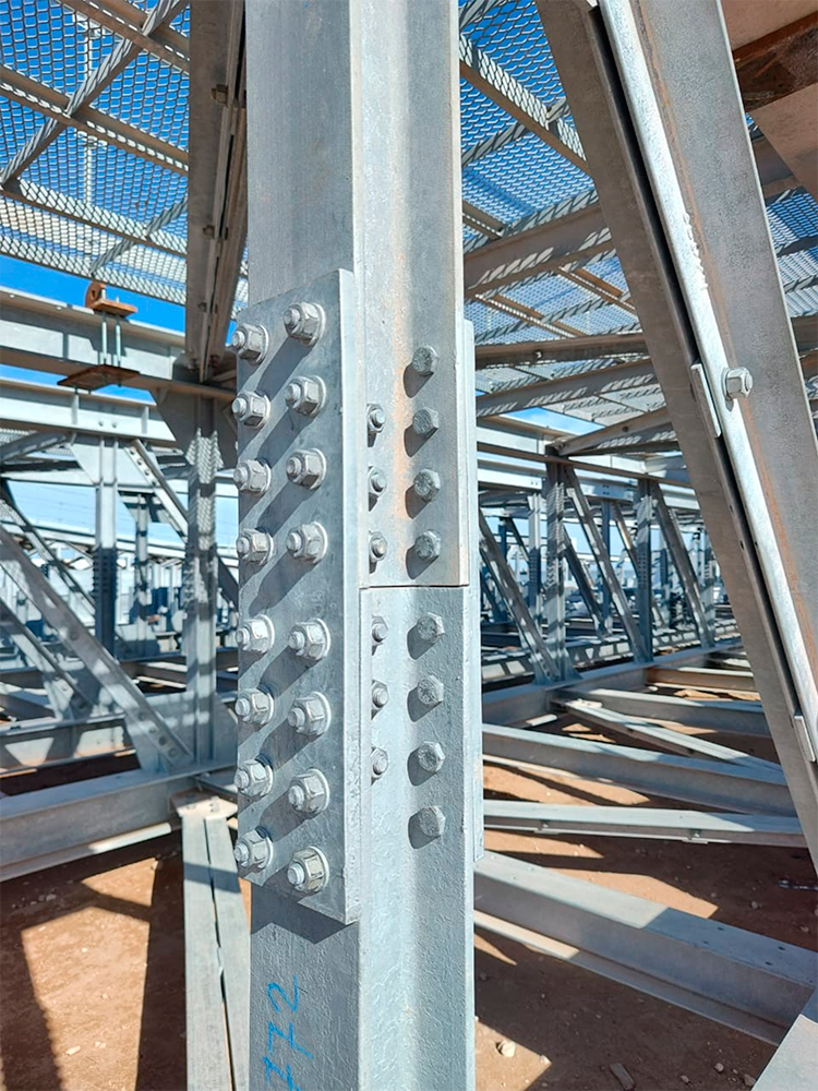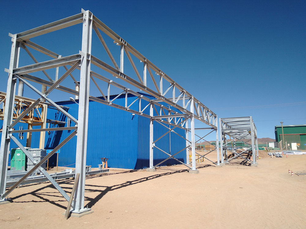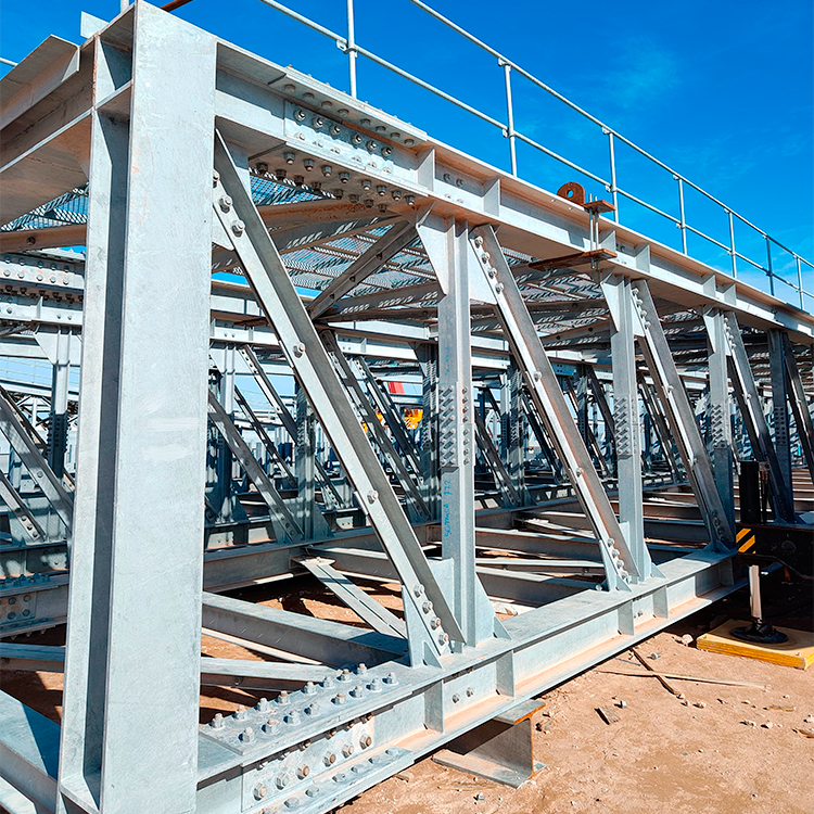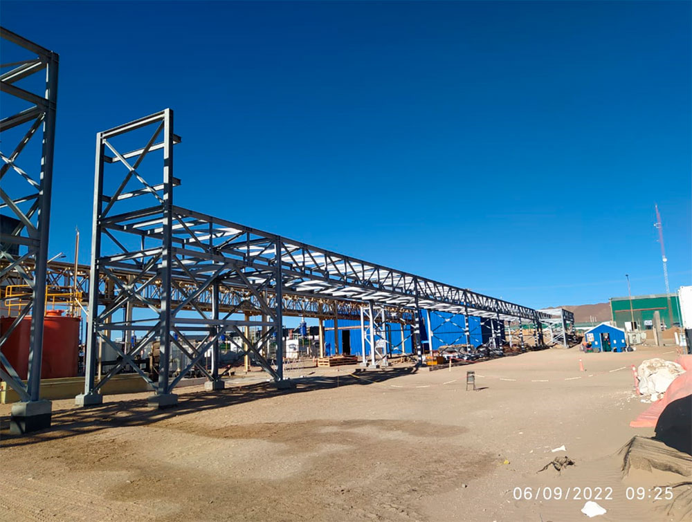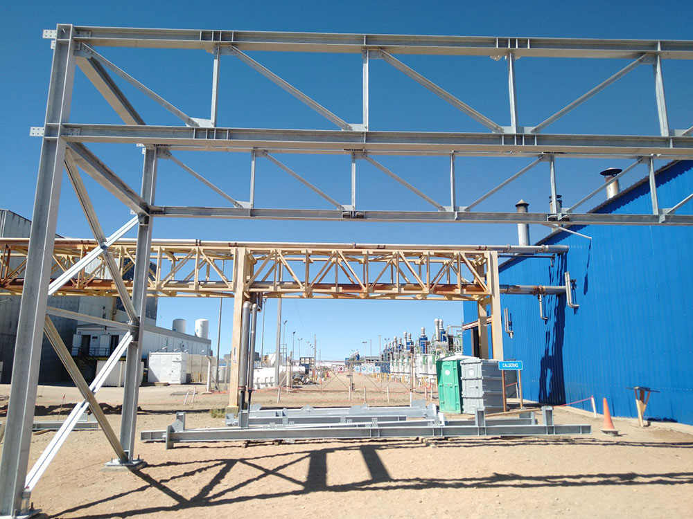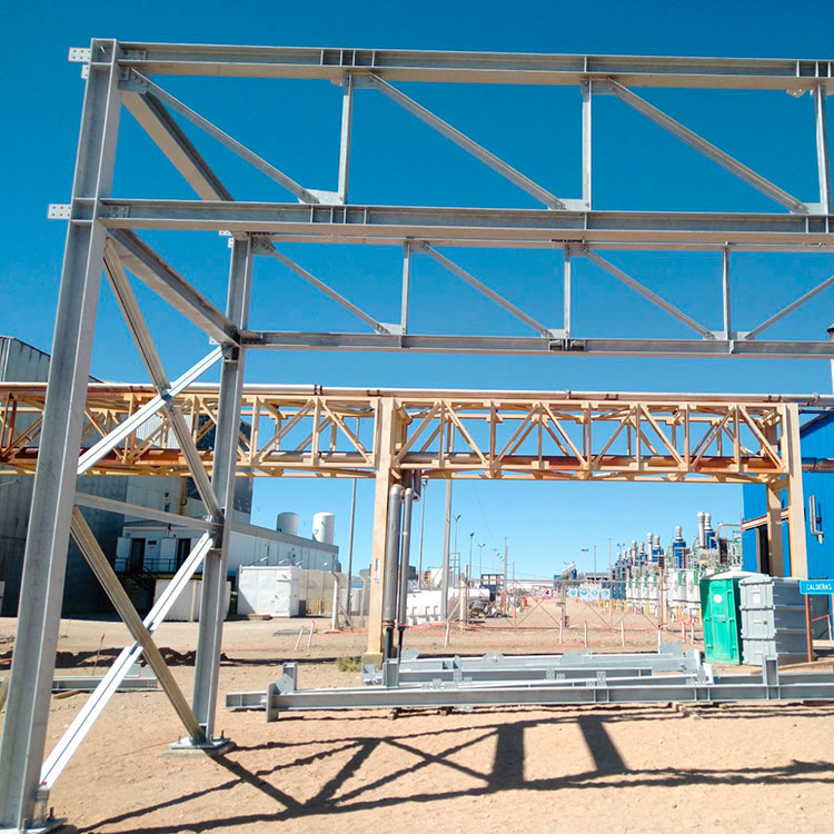 Estructura reticulada “Pipe rack". Esta estructura no solo garantiza la seguridad y eficiencia en las operaciones mineras, sino que también resalta el compromiso con estándares ambientales y de sostenibilidad. Un ejemplo destacado de cómo la galvanización protege y prolonga la vida útil de las estructuras en entornos industriales exigentes.